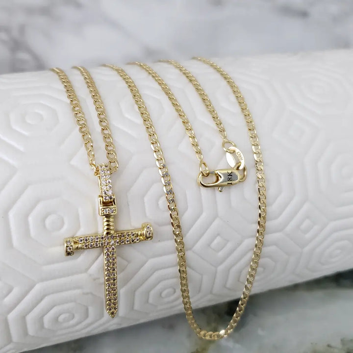 Cadena De Caballero De Tejido Cubana De 60cm-3mm De Grosor + Dije De Cruz Clavo + Envío Gratis